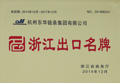 日前,東華集團(DH)DONGHUA 牌鏈條被浙江省商務廳授予“2014—2017年浙江出口名牌”稱號,并頒發(fā)榮譽證書。該證書的擁有將會加快企業(yè)轉型升級,深入實施出口名牌戰(zhàn)略,提高企業(yè)自主品牌的出口比率,增強企業(yè)的外貿核心競爭力。