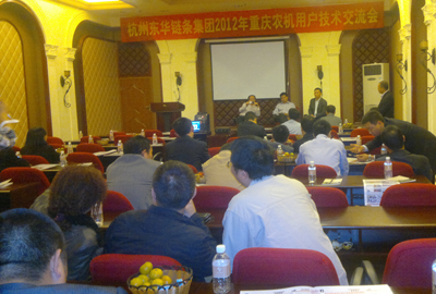 10月19日,重慶杭東鏈條銷售有限公司在重慶怡然大酒店舉行第二屆農(nóng)機(jī)鏈條配套產(chǎn)品技術(shù)交流會。參會30多家企業(yè)主要來自重慶地區(qū)。東華總部特派傳動鏈?zhǔn)聵I(yè)部副部長李奎林、輸送鏈?zhǔn)聵I(yè)部高級工程師閔乃忠參會。