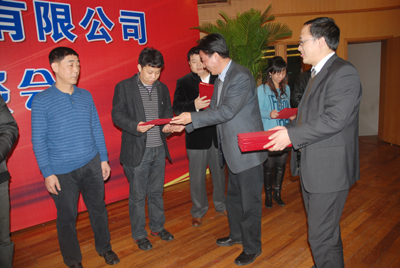 隨后,董事長宣碧華、董事長助理張世強向獲得2010年優秀經銷商的15位代表頒發了證書,并合影留念。