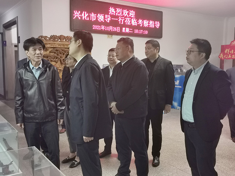 10月26日,興化市委副書記、代市長殷俊,興化市委常委、興化經濟開發區黨工委書記牛世杰,副市長孫玲玲及興化市財政局、商務局、發改委、工信局、行政審批局、自規局、環保局等重要部門領導一行到東華進行調研。集團名譽董事長宣碧華、副總經理廖杭州、東華鏈條興化公司法定代表人蔣亞龍等接待。