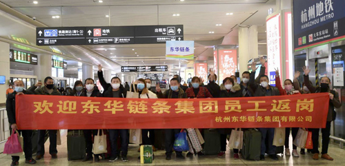 當(dāng)?shù)谝慌俗啥嫉胶贾菝赓M(fèi)專列的18名東華員工有序走出杭州東站時(shí),迎接他們的是區(qū)政府和公司領(lǐng)導(dǎo),還有區(qū)政府贈(zèng)送他們的口罩、牛奶、面包等愛心大禮包,公司還派專人專車護(hù)送他們回到家中,受到廣大員工的好評。